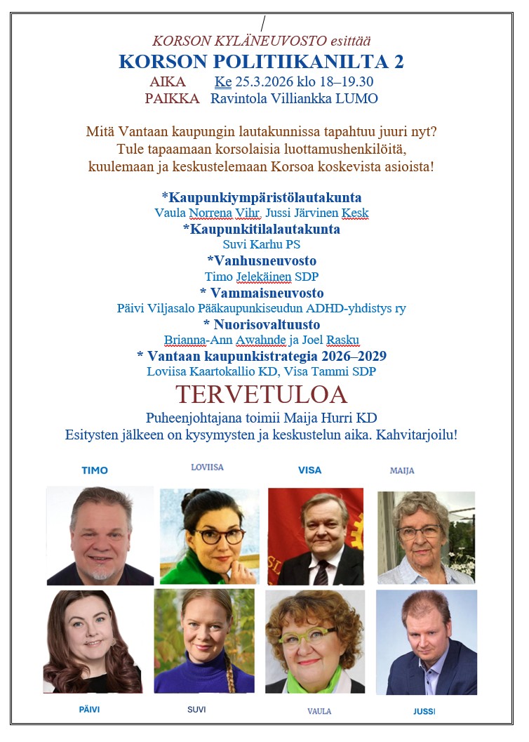 - Vantaan uusi osallisuusohjelma Osallistuva Vantaa 2022-2025 ja Korson Kyläneuvosto
