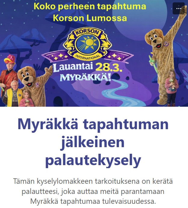 ONNITTELUT JA SUURI KIITOS KORSON LEIJONILLE HIENON KEVÄTTAPAHTUMAN JÄRJESTÄMISESTÄ YHDESSÄ KORSOLAISTEN TOIMIJOIDEN KANSSA.